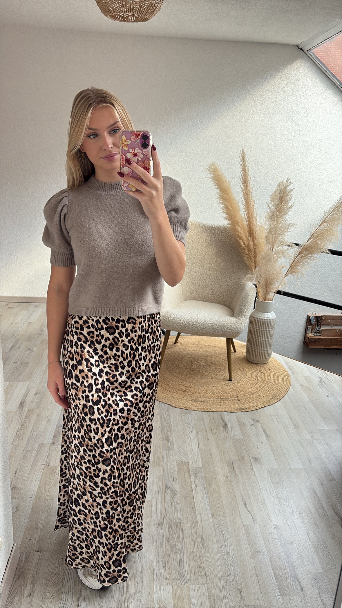 Leopard satijnen rok