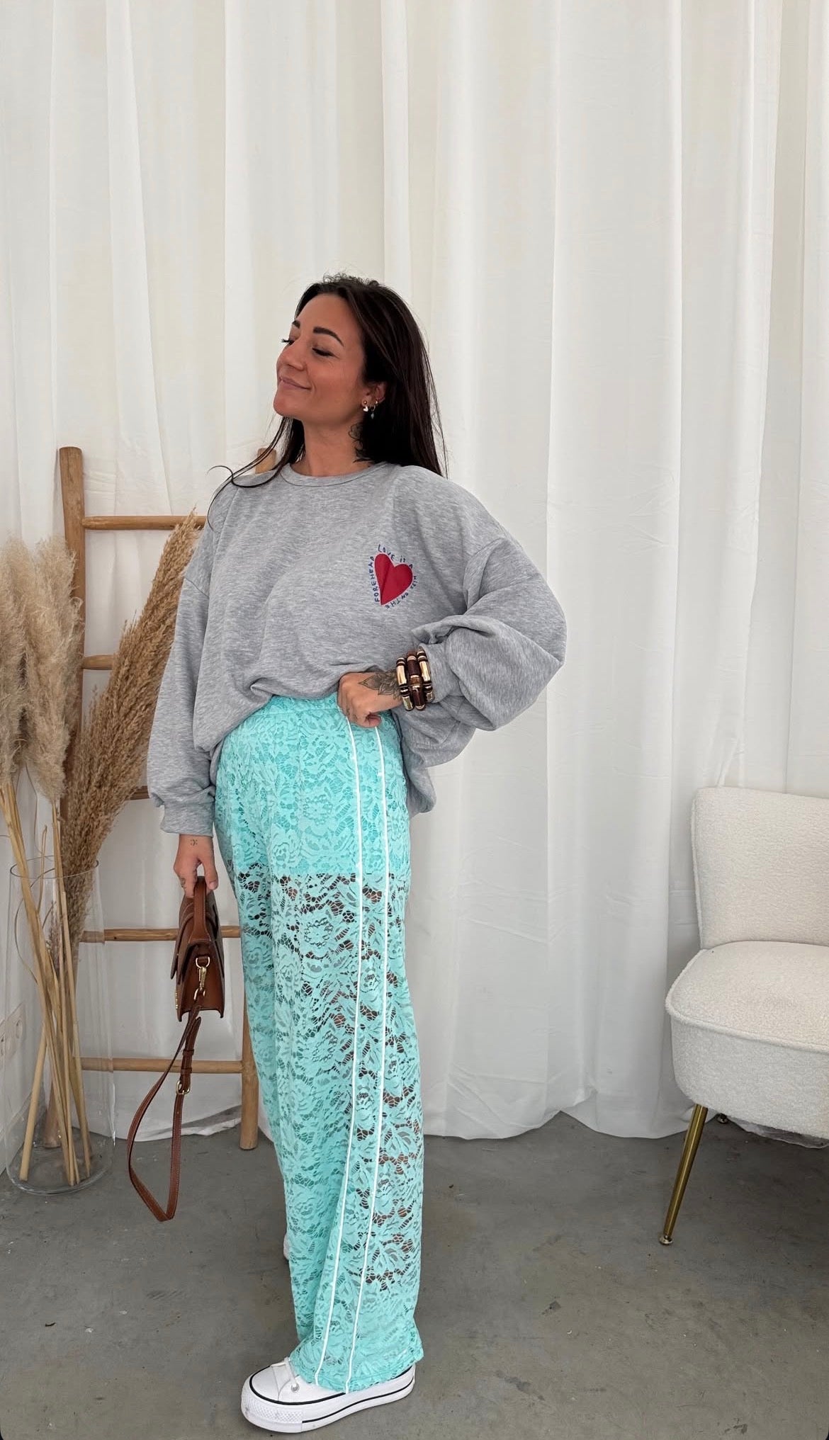 TURKOOIS KANTEN BROEK